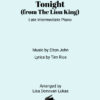 Can You Feel the Love Tonight (from The Lion King) – Music by Elton John, Lyrics by Tim Rice. Arranged for late intermediate solo piano by Lisa Donovan Lukas.